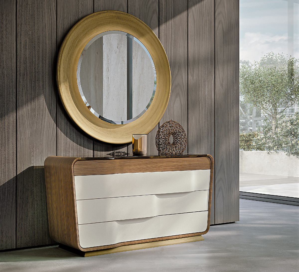 Этот комод станет ключевым акцентом в спальне, добавив ей элегантности, или дополнит гардеробную, органично сочетаясь с другими предметами коллекции. В гостиной он подчеркнет статус владельца, а в кабинете — создаст атмосферу респектабельности. Благодаря универсальной цветовой гамме (доступны различные варианты отделки) комод легко впишется в любой стиль — от классики до современного ар-деко.