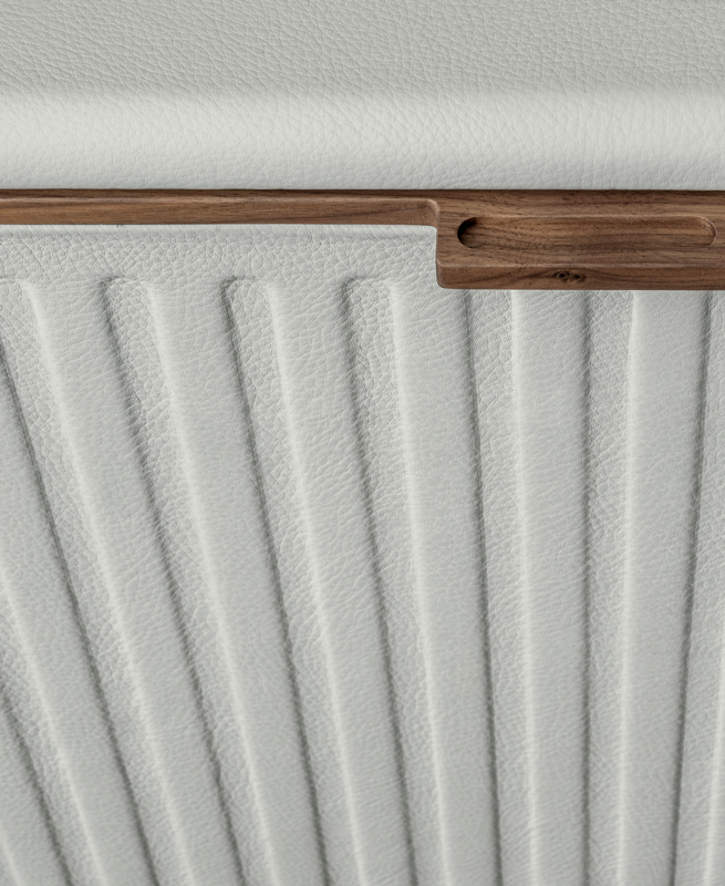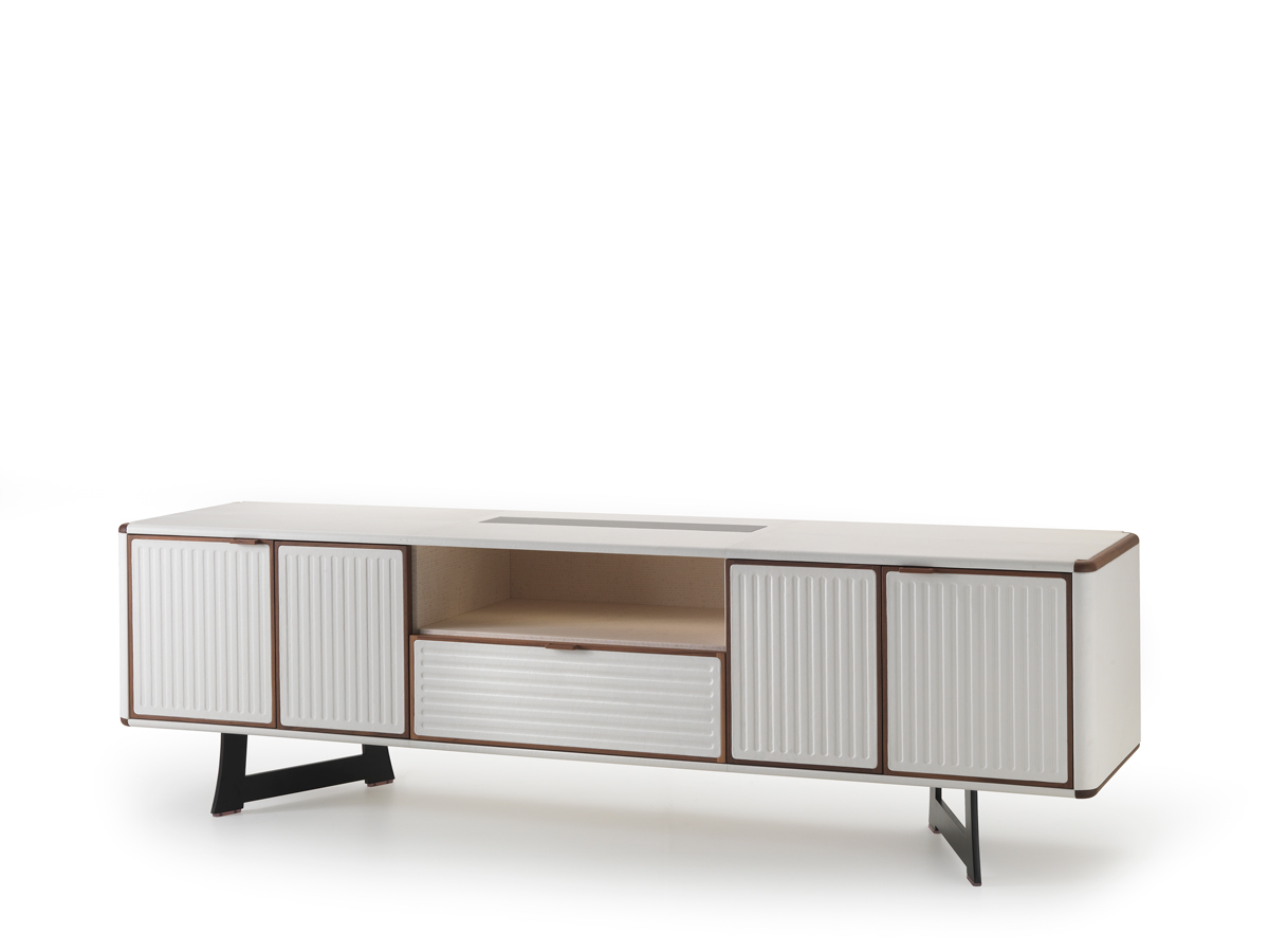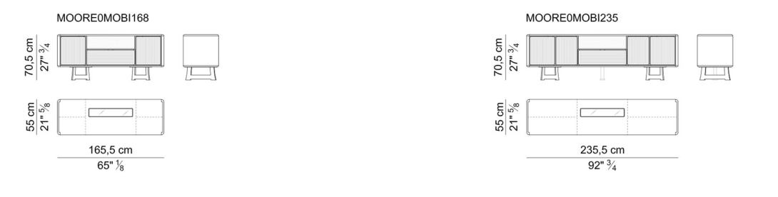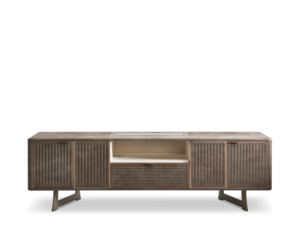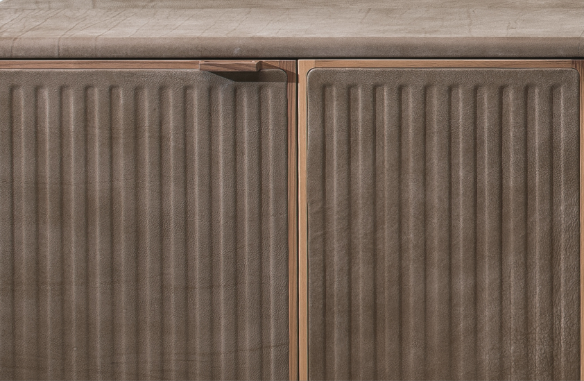 Moore — это коллекция, которая отдает дань традициям столовой: шкаф, обтянутый кожей, с элементами из массива дерева; основание напоминает стол из той же коллекции, чья металлическая структура напоминает форму самурайских мечей, памятных японцам.