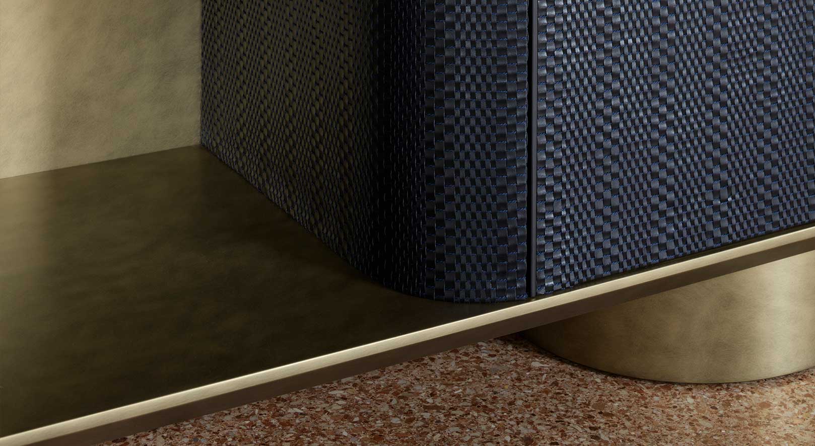 Гармоничное сочетание материалов и пропорций. Модели Nuage установлены на массивных цилиндрах, что придает им устойчивость и величественность, в отличие от строгого дизайна основных конструкций. Открывающиеся при нажатии двери, обтянутые специальной переплетенной кожей, представляют собой символический мост между двумя прочными основаниями. Сбалансированное взаимодействие компонентов создает утонченное и выдающееся изделие.