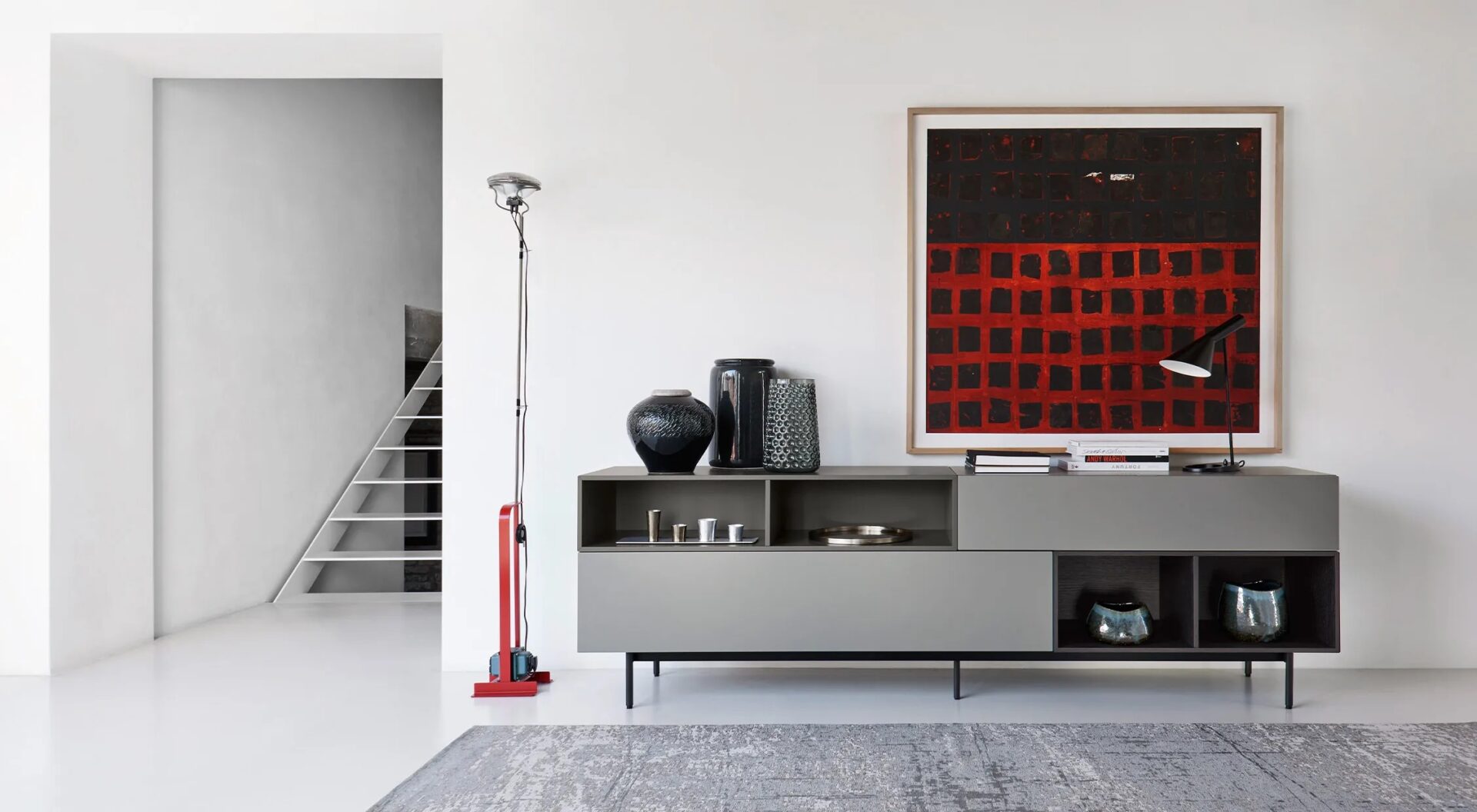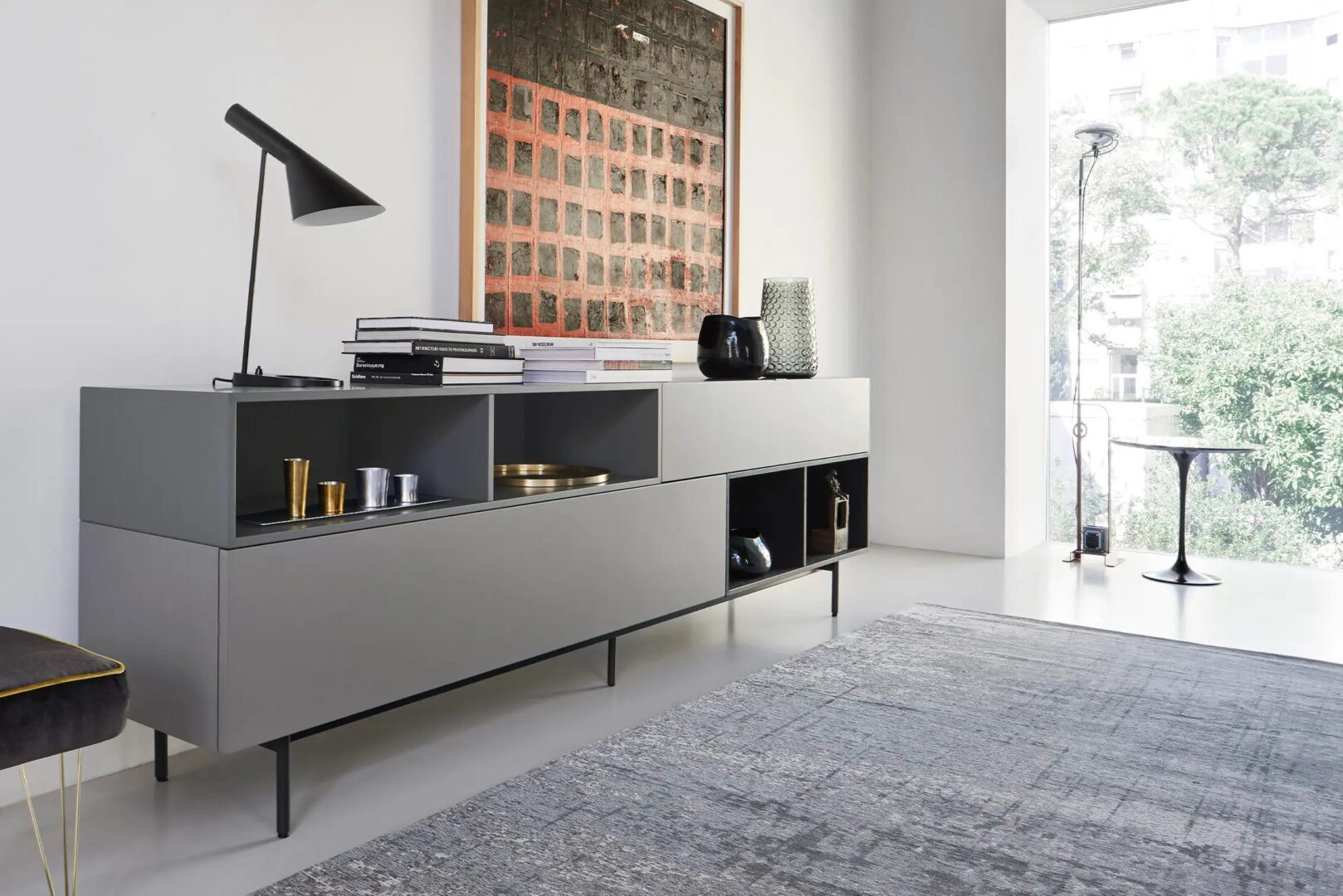 Содержать и выставлять, две потребности, которые решает Moderna Lampione Open в знак современной существенности и полной гибкости. Открытые отсеки, выполненные с соединениями под углом 45°, предлагают широкий выбор модульных измерений по ширине, высоте и глубине.