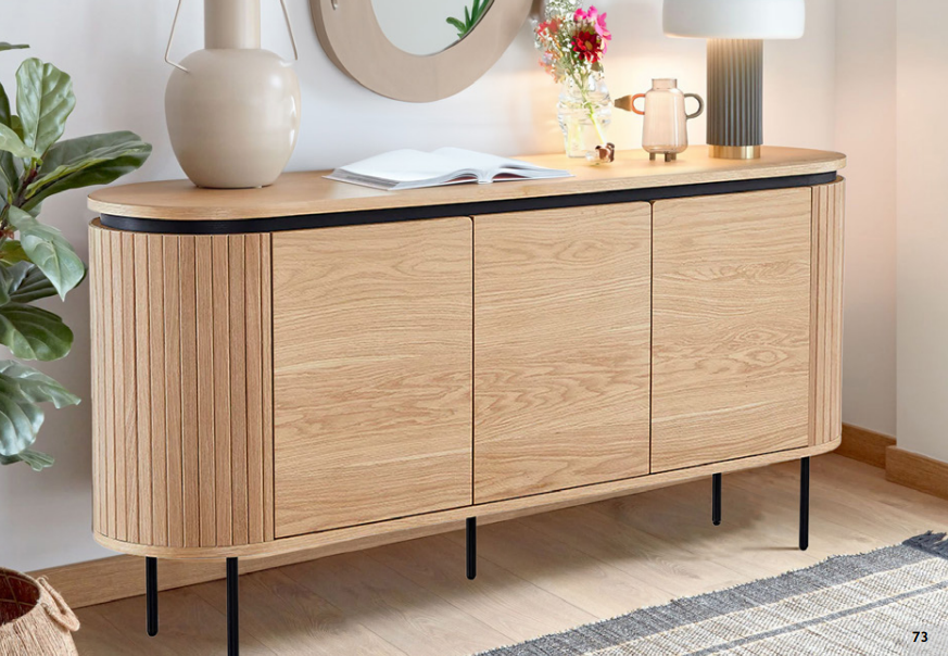 Конструкция из МДФ, отделка шпоном из дуба или ореха, ножки из черного металла. Размеры 120x40x76 см // 160x40x76 см