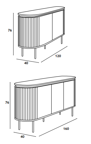 Комод имеет размеры 120 × 40 × 76 см и 160 × 40 × 76 см.