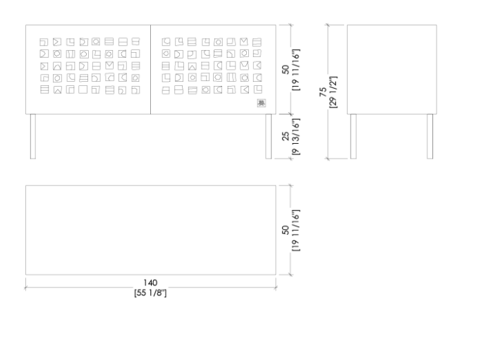 Комод с ножками из брашированного металла, с дверцами с инкрустацией и лакированным матовым корпусом. Дверцы с открыванием нажатием push-pull и наличие внутренней полки.
