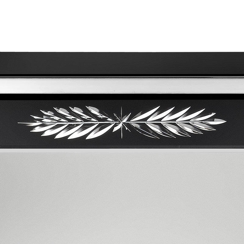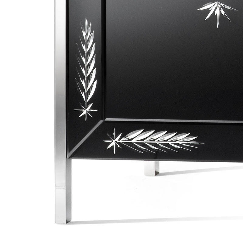 Конструкция из дерева, покрытая черным матовым лаком. Конструкция на четырех ножках из нержавеющей стали с блестящей отделкой.