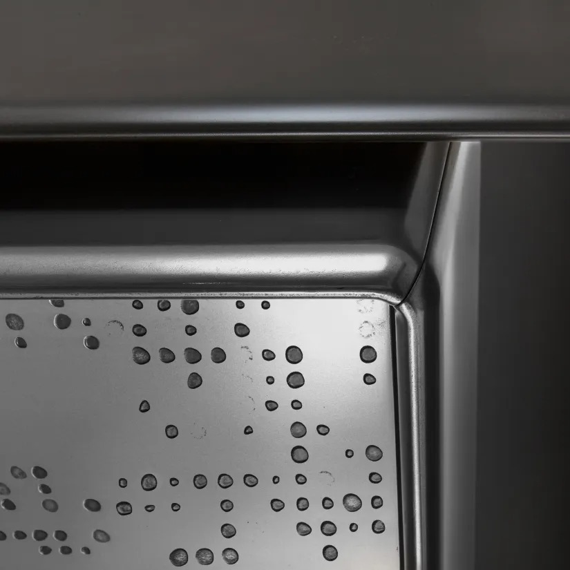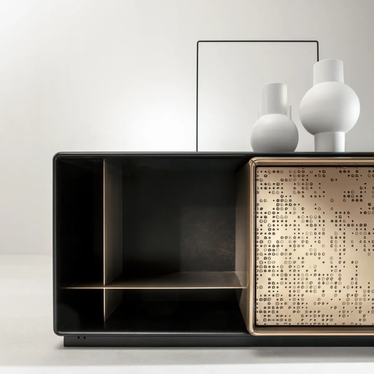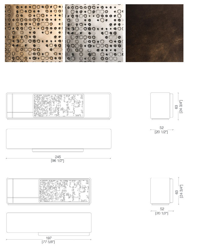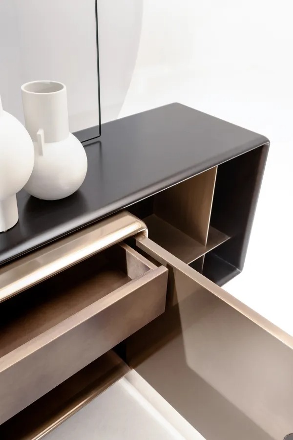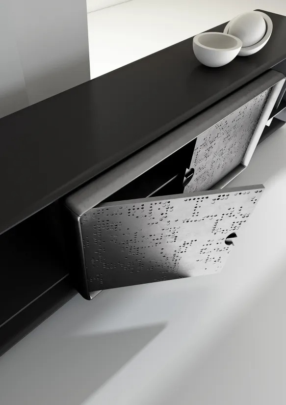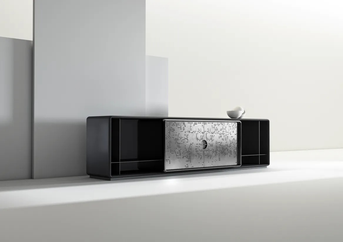 Низкий комод с корпусом из дерева или лакированного дерева и дверцами с отделкой «Жидкий Металл с текстурой Unlimited.
