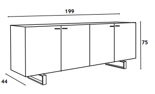 Комод имеет размеры 199 × 44 × 75 см.