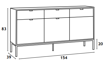 Комод имеет размеры 154 × 39 × 83 см (ширина × глубина × высота).