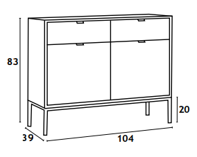 Комод имеет размеры 104 × 39 × 83 см (ширина × глубина × высота).