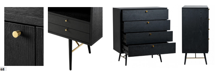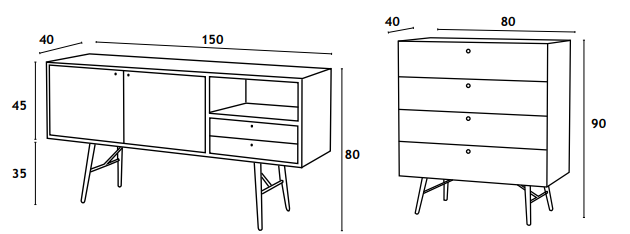 Конструкция из ДСП, отделка меламином ; металлические ножки с черным/золотым лаком. Размеры 150x40x80 см