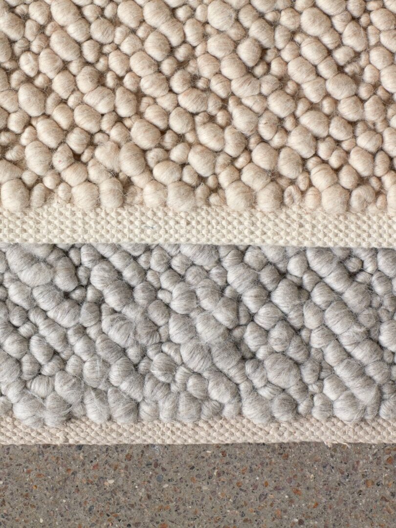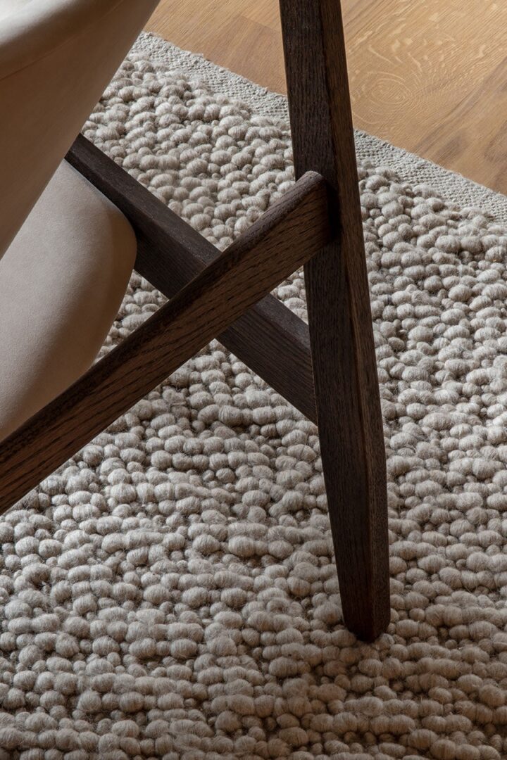 Ковер gravel сочетает в себе неокрашенные шерстяные волокна с неожиданной техникой плетения, которая придает дизайну глубину и сложность.