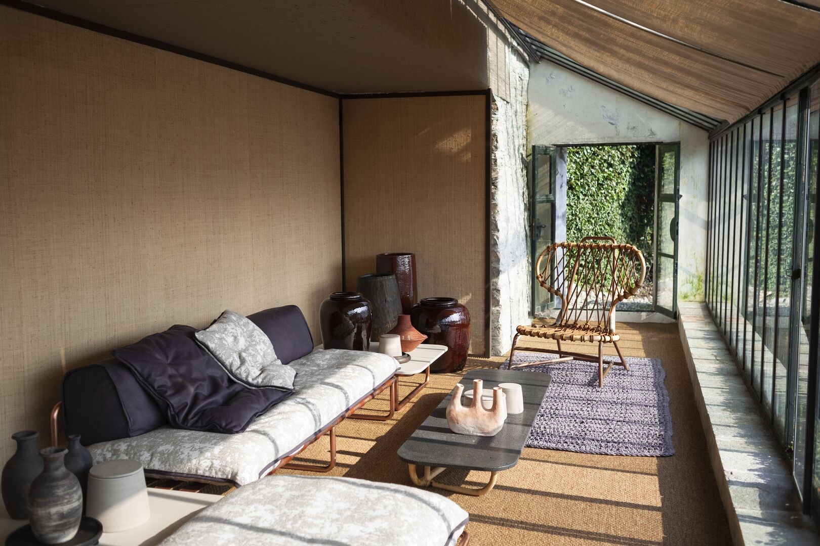 Изысканное соединение дизайна и ноу-хау — ковер для открытых площадок Kodari от Baxter, сотканный вручную в Индии с использованием оригинальной техники hand woven, которая предусматривает полотняное переплетение из крученой и смешанной пряжи после процесса окрашивания натуральными красителями. Ковер Kodari, созданный с тем, чтобы стойко выдерживать все вызовы, связанные с открытыми площадками, представляет собой гармоничное сплетение силы и элегантности, достоинств, которые можно оценить при прикосновении и визуально в образующих его затейливых узорах. Каждый ковер для открытых площадок, который предлагается в различных размерах и расцветках, отличается уникальностью и выразительностью благодаря оригинальным хроматическим вариациям, подчеркивающим его непревзойденную красоту.