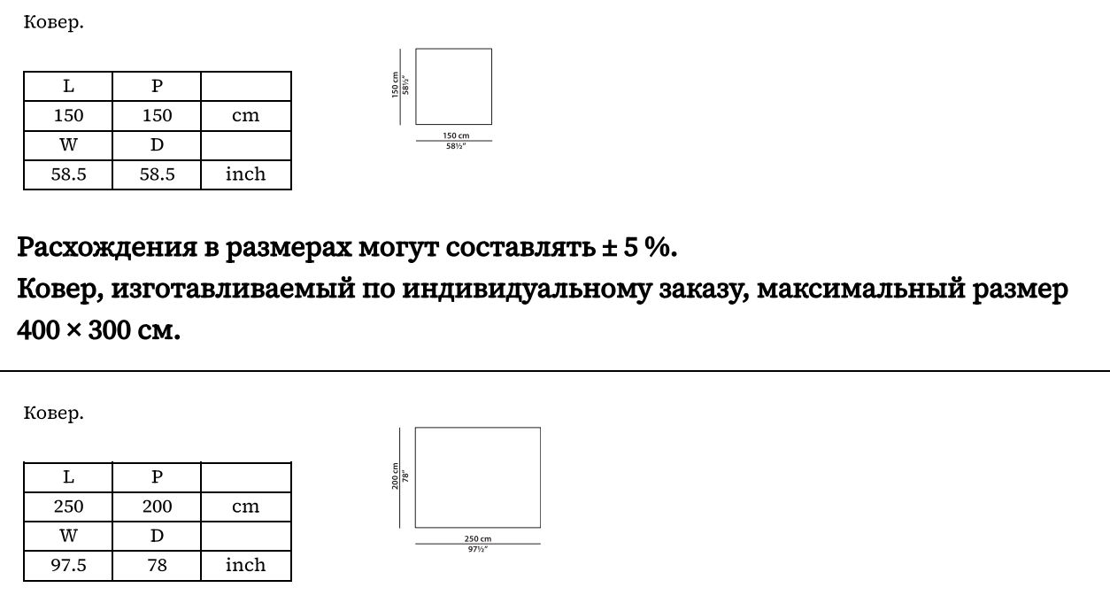 Информацию о размерах уточняйте по телефону +7 (495) 369-17-36 или по эл. почте import_mondointerior@mail.ru