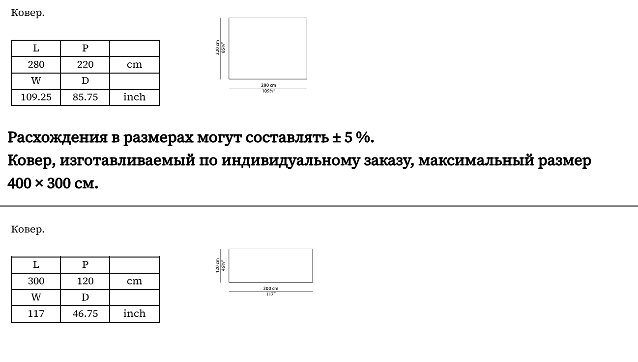 Информацию о размерах уточняйте по телефону +7 (495) 369-17-36 или по эл. почте import_mondointerior@mail.ru