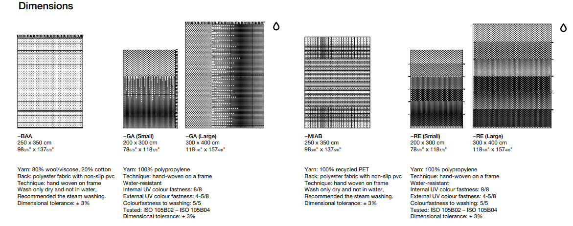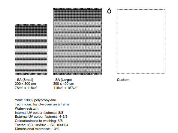Доступен в трех цветах с нескользящей подкладкой. Стандартный размер можно адаптировать под индивидуальные требования. Итальянское качество и инновационный подход к sustainability — отличительные черты этого ковра.