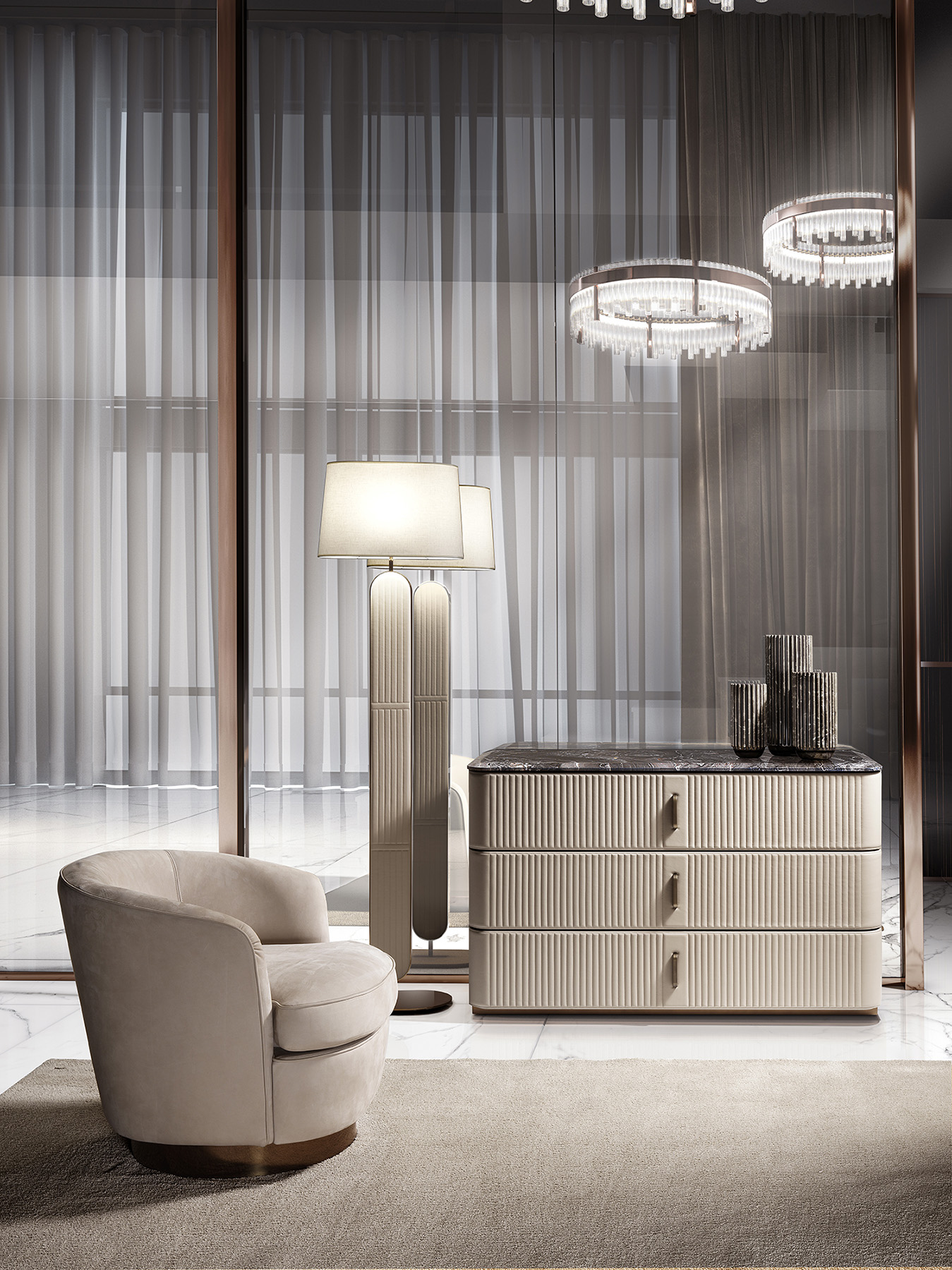 Торшер Coco идеально впишется в различные стили интерьера — от классики до современного минимализма. Он прекрасно дополнит: