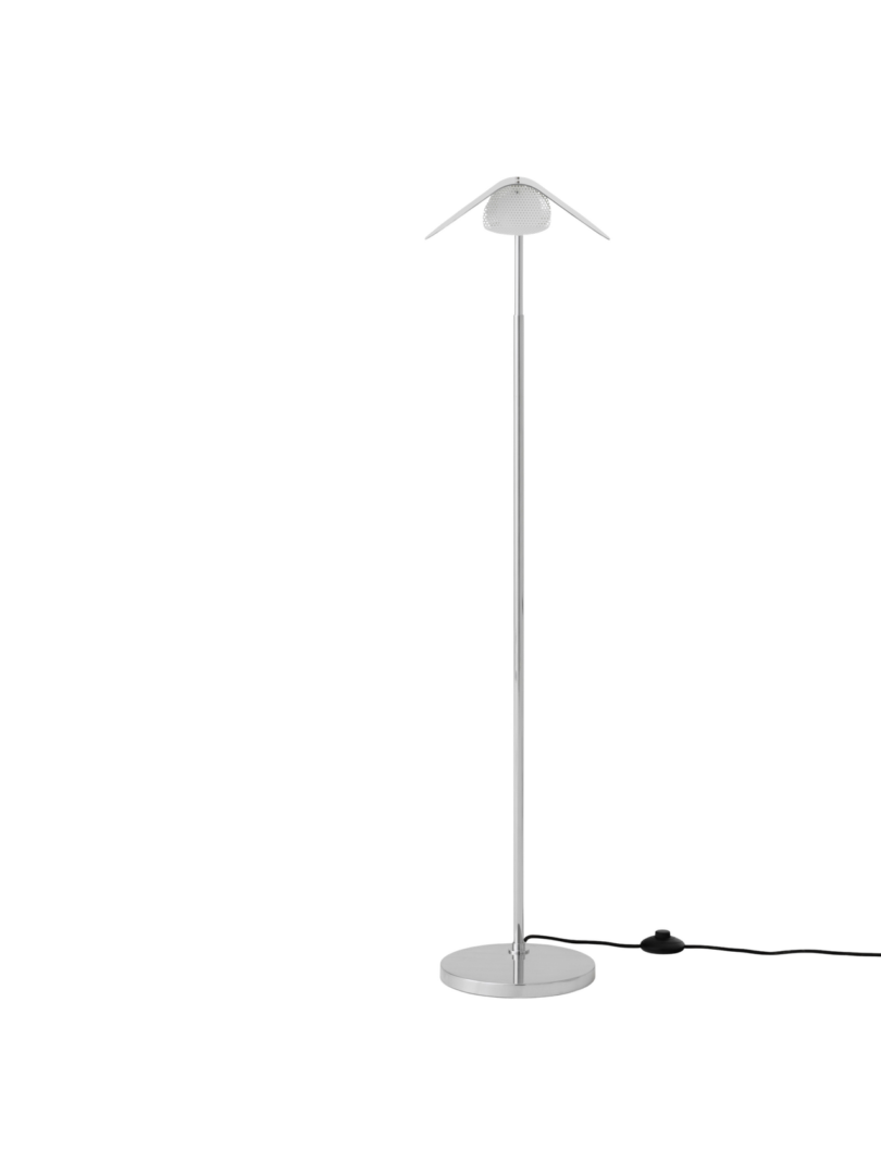 Современный торшер Wing с минималистичным дизайном, обладающий вневременной привлекательностью, привносит характер в любую обстановку благодаря своей игривой эстетике. Абажур из полированного алюминия, напоминающий крылья птицы, вращается, позволяя направлять свет туда, куда это необходимо, и создавая игривое движение в архитектурном дизайне.