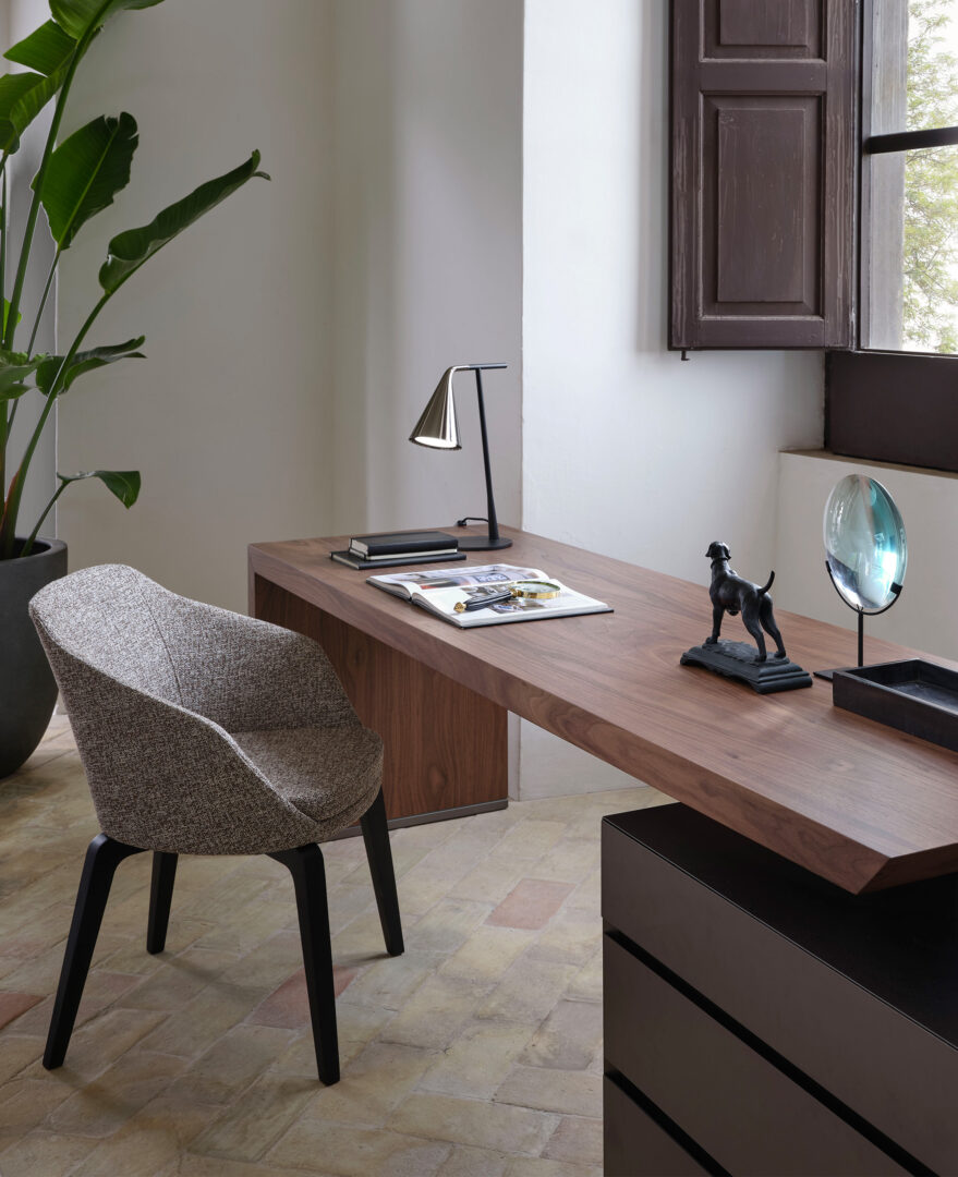 Письменный стол Cubik, спроектированный архитектором Джо Гарцоне (Joe Garzone), предназначен для использования как в офисных помещениях, так и в жилых помещениях в качестве рабочего стола. Конструкция отличается деревянной поверхностью с 45-градусным срезом, облицованной ясенем, орехом Каналетто или лакированным деревом. Он сочетается с самодвижущимся комодом с тремя выдвижными ящиками, который доступен в различных конфигурациях размеров.