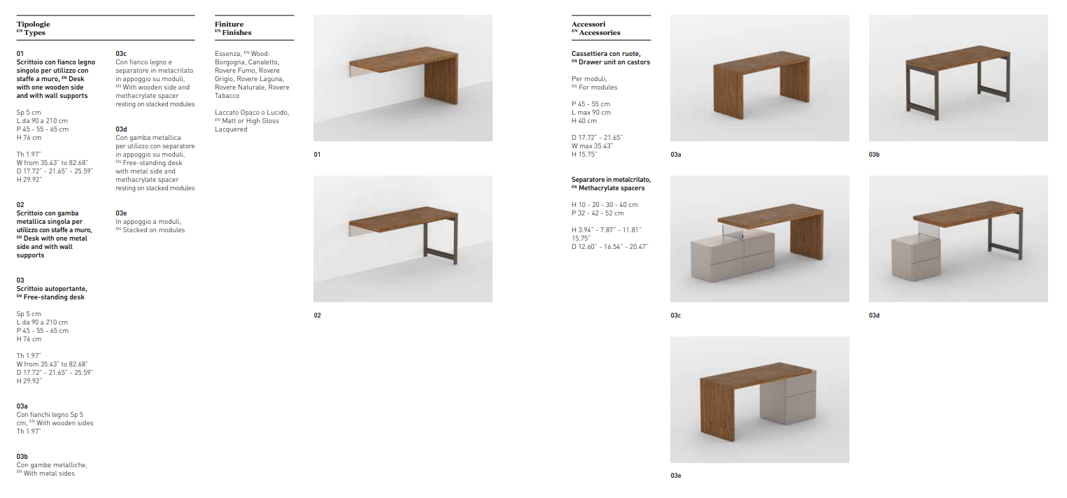 Письменный стол, рабочее место, а также тумбочка. У Domino есть своя индивидуальность: формальная и функциональная, ее можно использовать различными способами и в разных местах. Он идеально сочетается с коллекциями People и Spazio, с которыми у него общие черты отделки и дизайна: минималистичный, но необходимый дизайн, выполненный с использованием уникальной системы “складывания” Pianca. Domino доступен во многих размерах и конфигурациях: как отдельно стоящий стол, он доступен с двумя деревянными бортиками или с металлическими ножками; как встроенный стол, он может крепиться к стене.