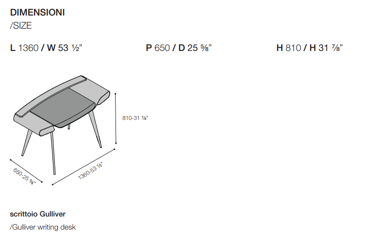 Центральная столешница комода обита мягкой кожей, как и практичная маленькая полка, которая служит мостиком между двумя боковыми отделениями для хранения вещей. Основание состоит из четырех металлических ножек конической формы.