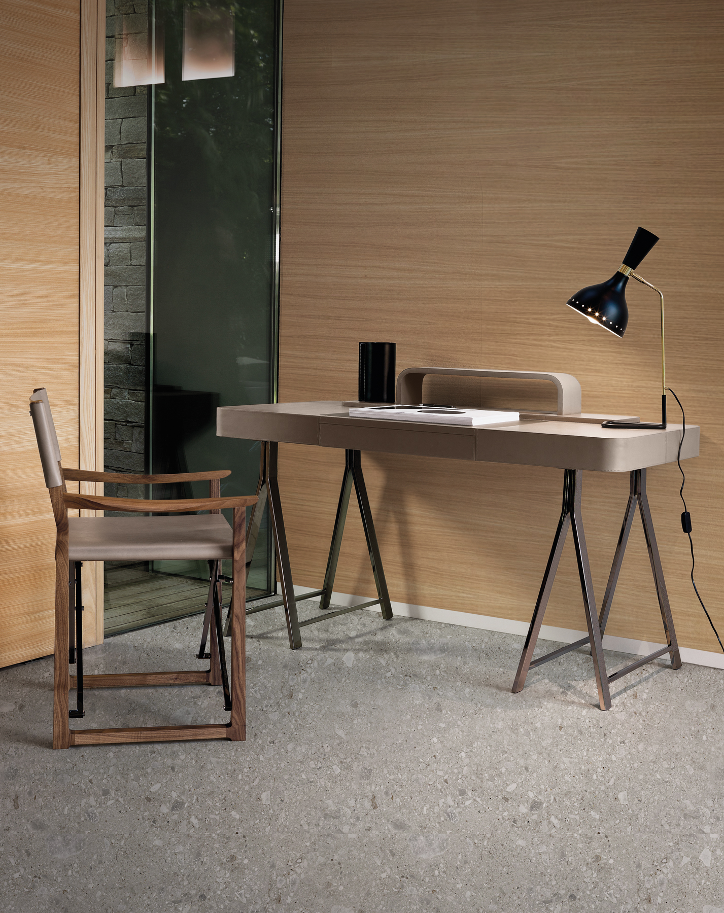 Предмет интерьера, который определяет обстановку; элемент, воплощающий интимность ритуала; проект, который рассказывает о традициях дизайна интерьера в современной интерпретации. Это письменный стол Napa от Умберто Аснаго, который трансформируется в туалетный столик. На легкой конструкции, состоящей из двух эстакад, покоится тонкая поверхность, которая оформляет пространство горизонтальным знаком. Модель Napa, изготовленная из мягкой кожи, металла и стекла, оснащена рядом выдвижных элементов для хранения и аксессуаров, таких как зеркало, которые превращают работу в самый чувственный и интимный из способов ухода за собой.