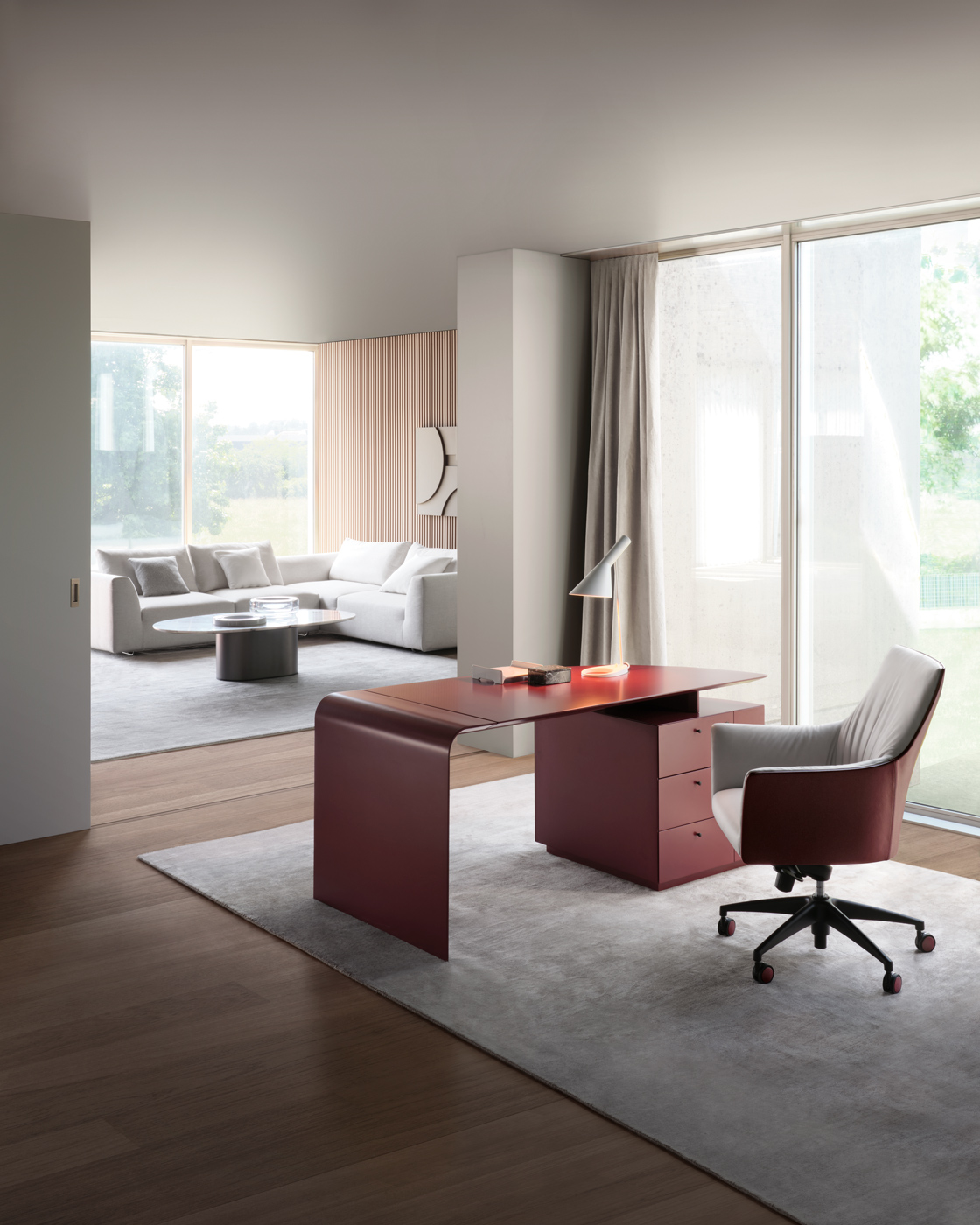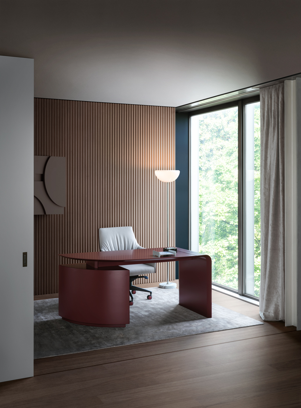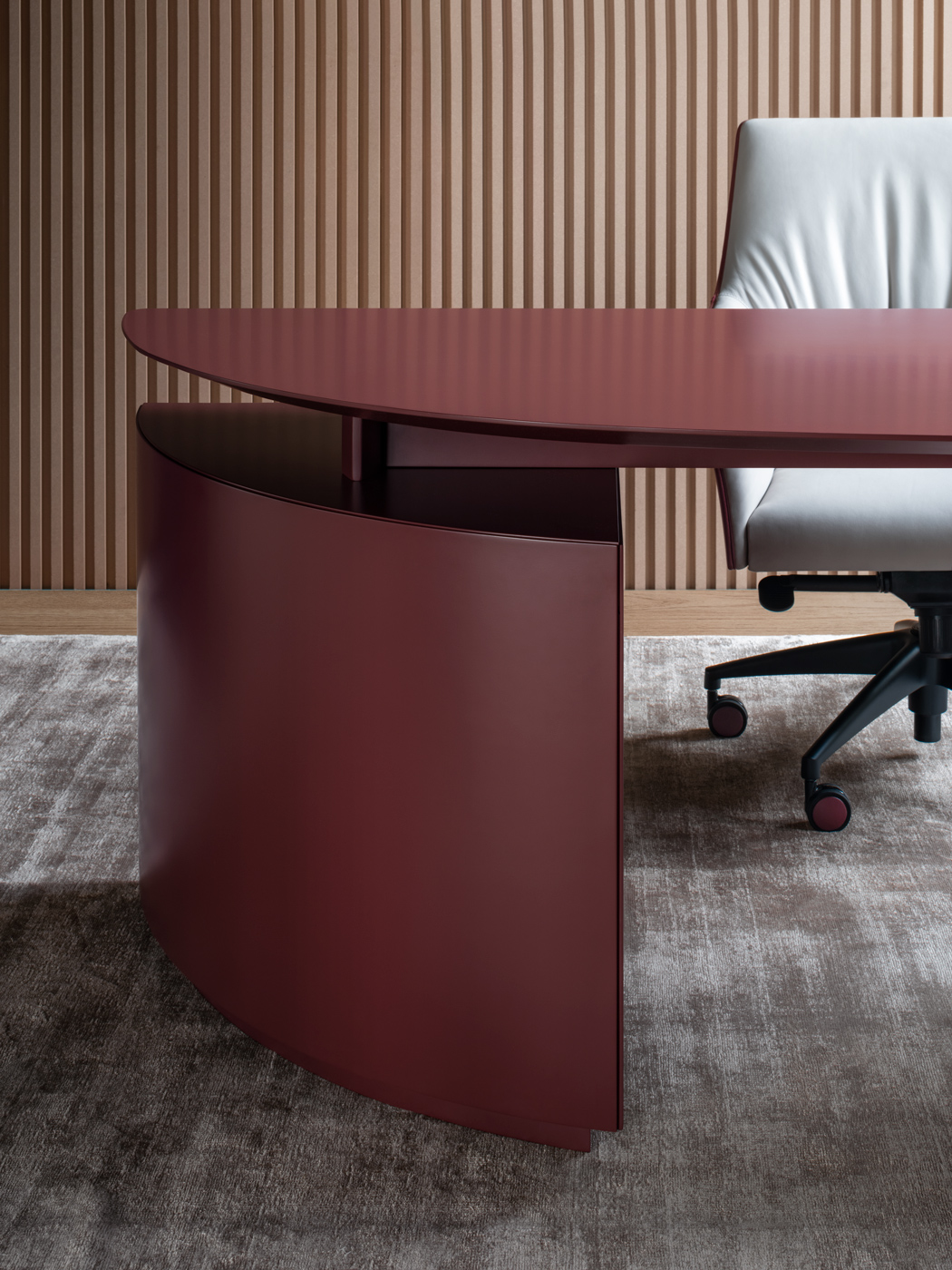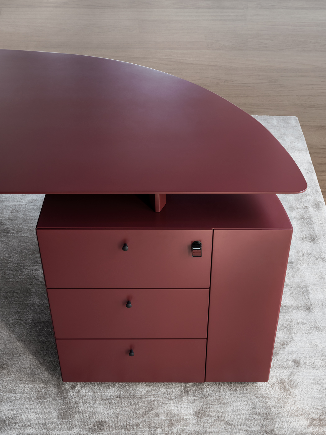 «СИЕНА» отличается одновременно важным и утонченным дизайном, полученным благодаря верхней части, которая с одной стороны изгибается и становится конструкцией, а с другой поддерживается значительным объемом. В результате получается изделие, демонстрирующее игру геометрии, линий и пропорций, подчеркнутую наличием и превосходным качеством изготовления натуральных материалов, таких как дерево и седельная кожа, а также лакированной отделкой, которая для 4Mariani представляет собой неопубликованный стилистический язык, представленный Ludovica+Roberto Palomba.