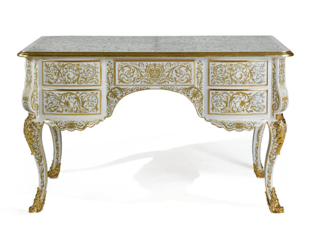 Письменный стол с латунной инкрустацией в классическом стиле, выполненный в соответствии с требованиями художественного мастерства традиции брианцола. T150 доступен в нескольких версиях:
