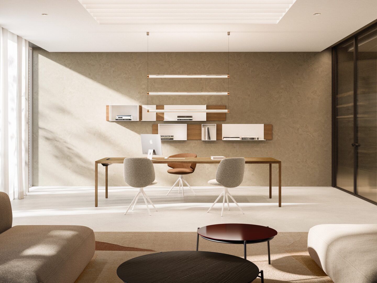 Культовая коллекция материалов Tense, разработанная Пьерджорджио и Микеле Каззанигой, подчеркивает материальность их отделки, обеспечивая уникальные тактильные ощущения. Минималистичный и строгий дизайн столов сочетает в себе элегантность и простоту, одновременно демонстрируя глубокие технологические инновации. Благодаря внутреннему натяжению столешница толщиной всего 35 мм может растягиваться в длину до четырех метров, всегда сохраняя идеальную ровность.