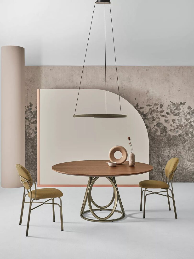 Подвесной светильник с потолочной розеткой, окрашенной в черный цвет, и структурой из лакированной стали в цвете темной латуни. Предусмотрен сенсорный пульт дистанционного управления для диммера — дальность действия 30 м — и опциональный приемник.