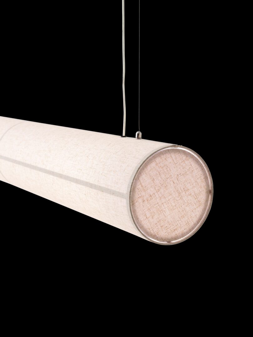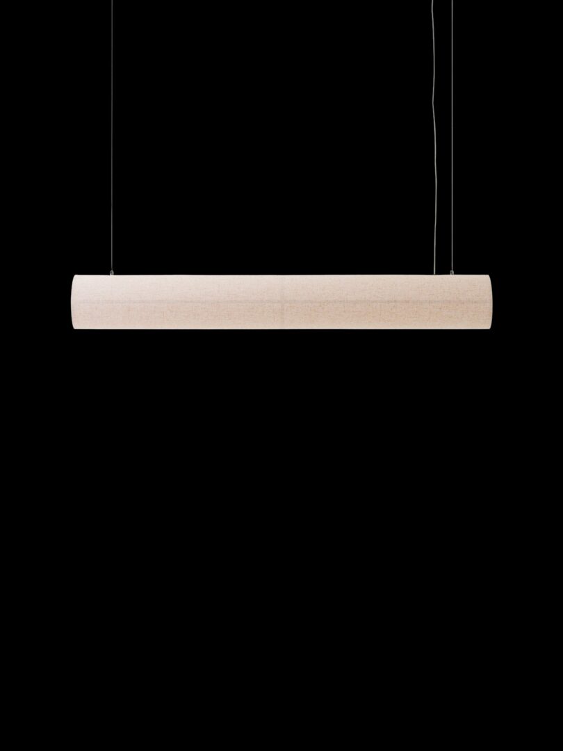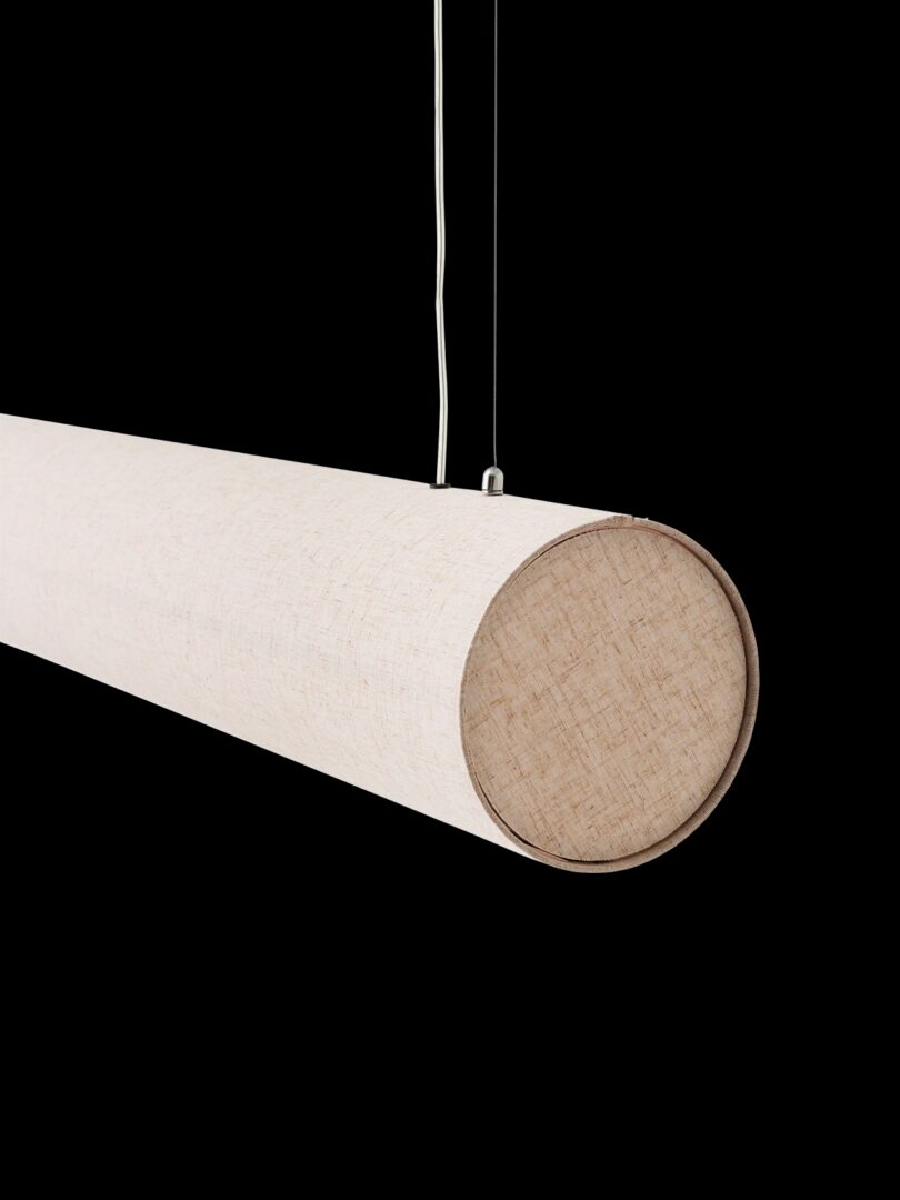 Линейная подвесная лампа Hashira, созданная для придания пространству безмятежности и изысканности и идеально подходящая для установки над обеденным столом. Обтекаемая лампа, подвешенная к потолку на проводах, словно парит в воздухе, а ее полотняный абажур удерживается на месте с помощью магнитов, что исключает необходимость в громоздких винтах.