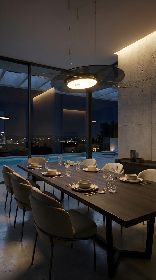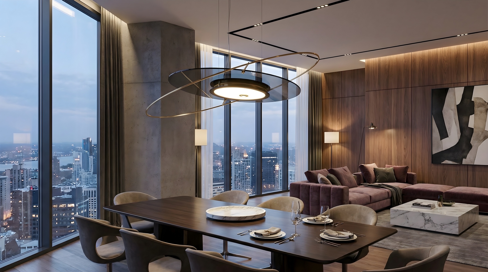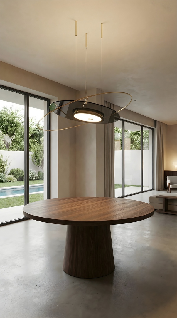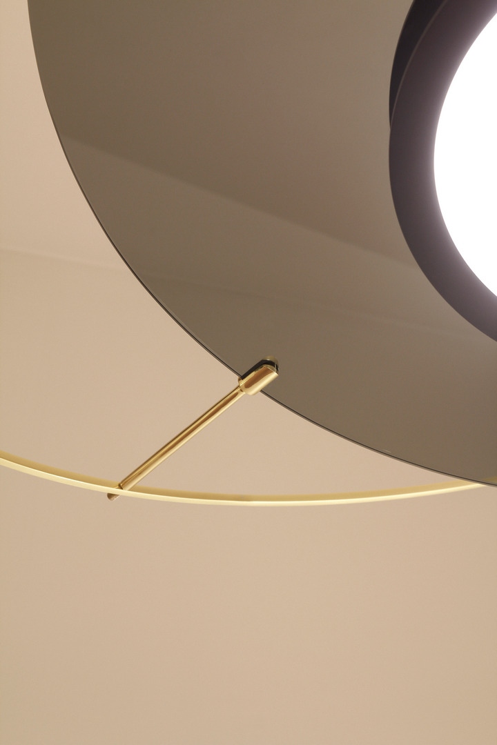 Круглые рассеиватели Astra, легкие и, по-видимому, невесомые, расходятся в пространстве подобно лимунистическим орбитам, создавая баланс между движением и геометрией.