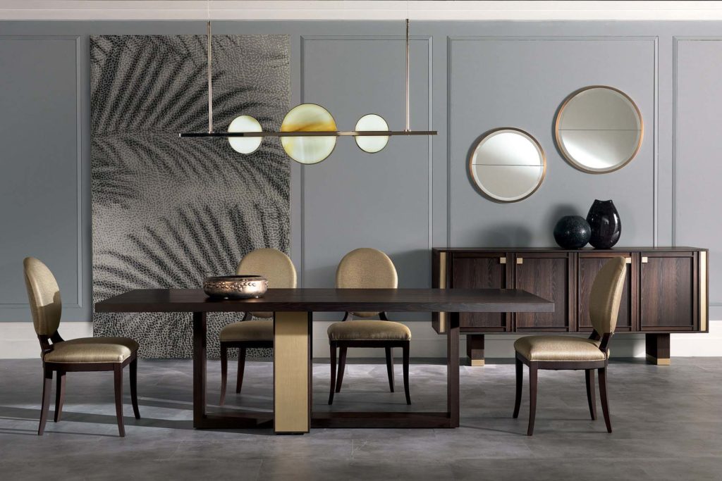Люстра (ED/20 509): 140 × 7 × h 92 см. Бра (ED/20 510): 55 × 11 × h 52 см. Настольная лампа (ED/20 511): Ø 28 × h 72 см.