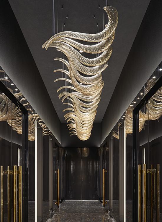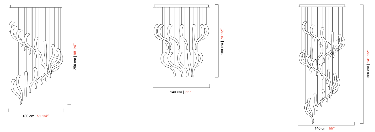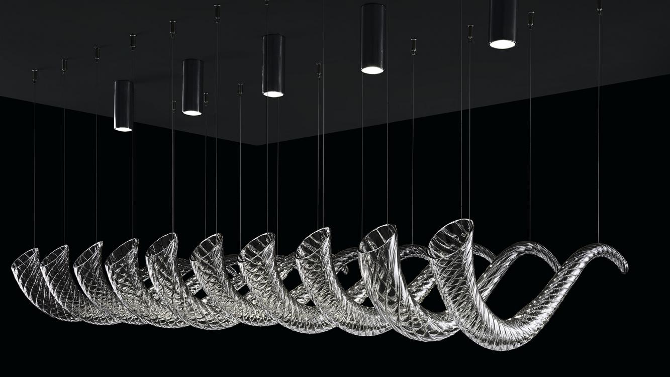 Swing воплощает театральность и динамику, присущие лучшим работам венецианских мастеров. Тонкие стальные тросы, словно невесомые нити, удерживают хрустальные элементы, создавая иллюзию парящих в воздухе скульптур. Коллекция предлагает как геометрически точные круглые формы, так и свободные, почти хаотичные композиции, подчеркивающие индивидуальность интерьера.