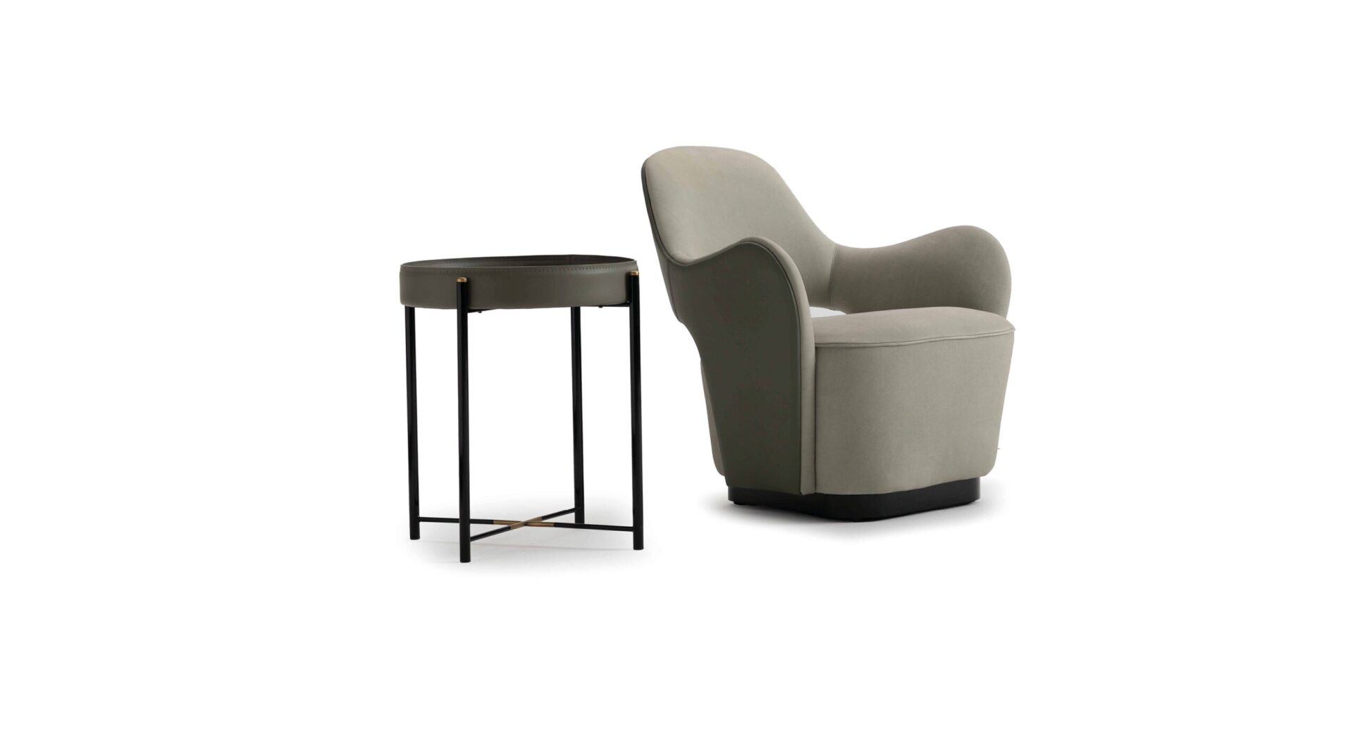 Сатурн представляет собой серию журнальных столиков с изысканными круглыми и овальными формами, металлическими рамами и атласными латунными концами.