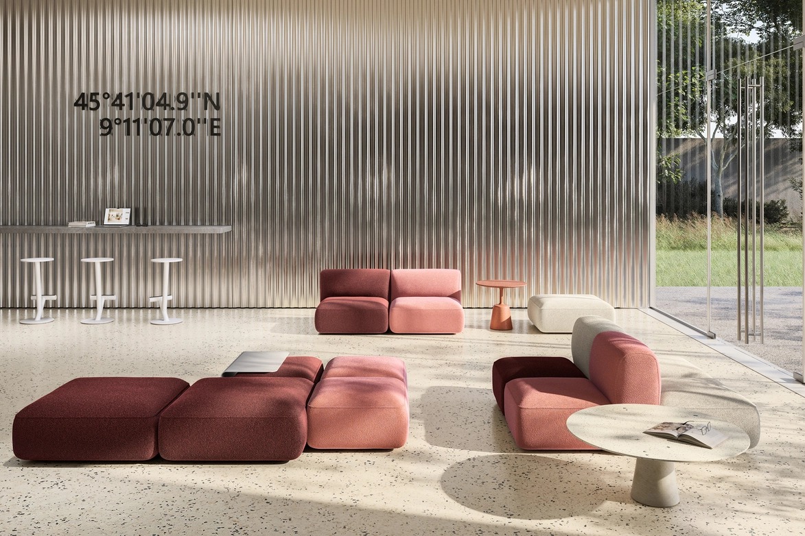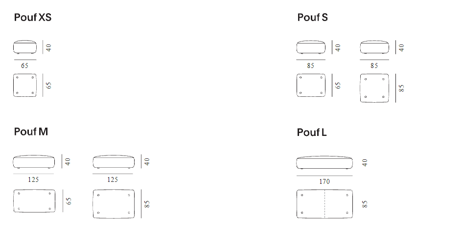 Уютные пуфы, доступные в четырех размерах, повышают универсальность коллекции, предлагая исключительную гибкость. Комбинируя различные элементы, можно создавать динамичные конфигурации, которые отличаются глубиной и отделкой, легко адаптируясь к любой обстановке.