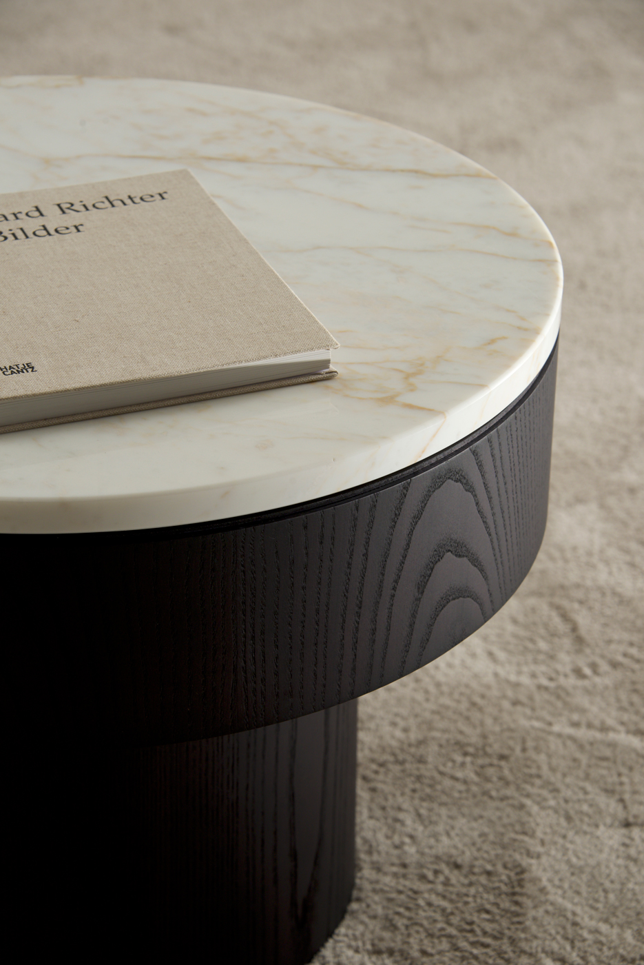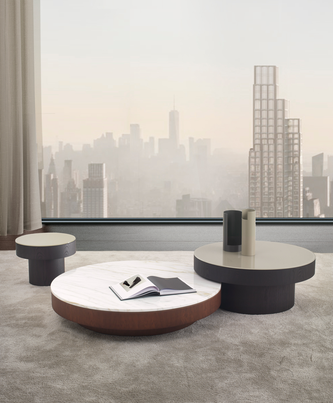 Dot — это семейство небольших столов с монолитной формой, столь же решительной, как и dot. Состоит из центральной колонны, служащей опорой для круглых или овалообразных столешниц, где окрашенная ясеневая отделка оснований сочетается в симфонии цветов с множеством хроматических тонов мраморных или хрустальных столешниц, окрашенных с обратной стороны.