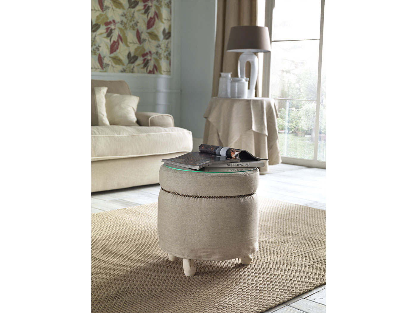 Версии: пуфик с закаленным стеклом. Структура: древесина и ее производные. Набивка: пенополиуретан с различными размерами и качеством, полиэфирные волокна. Особенности: со стандартными гвоздями; частично открытые ножки в цветах, предусмотренных в каталоге.
