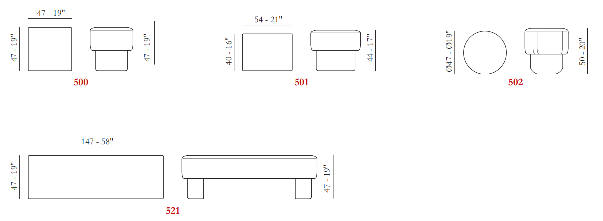 Коллекция Pio предлагает три вариации исполнения — с круглым, квадратным и прямоугольным сиденьем, что позволяет создать динамичную композицию или лаконичный ансамбль. Пуфы можно использовать как подставку для ног, дополнительное сиденье или даже мини-скамью, в зависимости от ваших потребностей. Декоративная контрастная строчка подчеркивает безупречные линии, а возможность выбора отделки делает каждый экземпляр уникальным.
