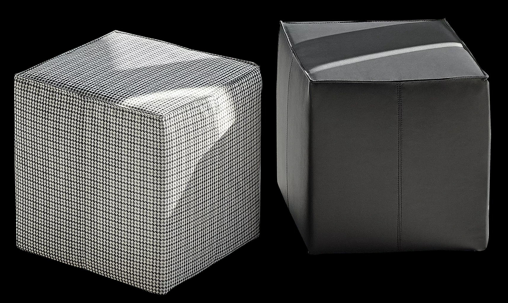 Пуф со структурой из дерева, в обивке из эко кожи,ткани Nordic, принтаткани Nordic и чистой шерсти.