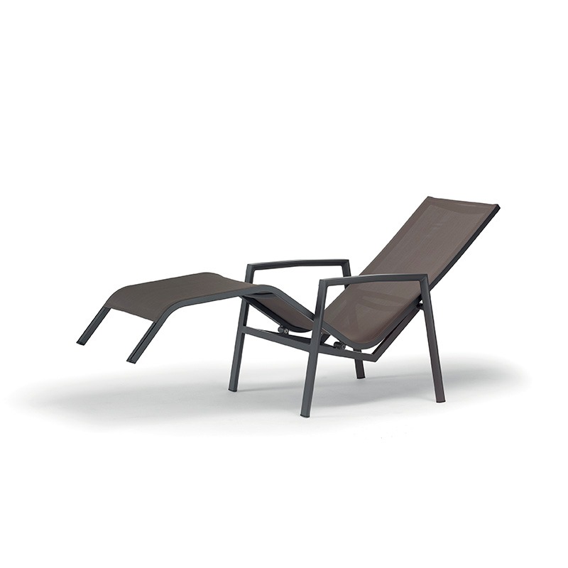 Складываемый алюминиевый каркас шезлонга, сиденье и спинка из текстиля толщиной 2,0 мм.