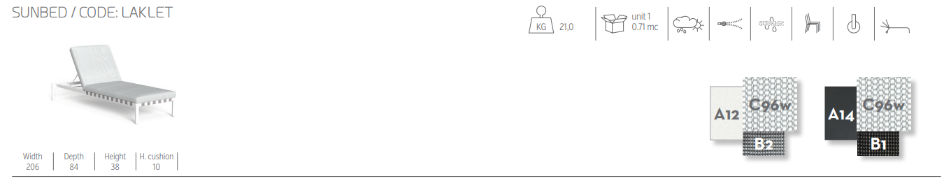 Шезлонг Lake отличается оригинальным дизайном алюминиевой рамы, вдохновленным естественной элегантностью бамбука. Трубчатые модули имеют мягкие и изящные формы, которые делают обстановку на открытом воздухе современной и оригинальной.