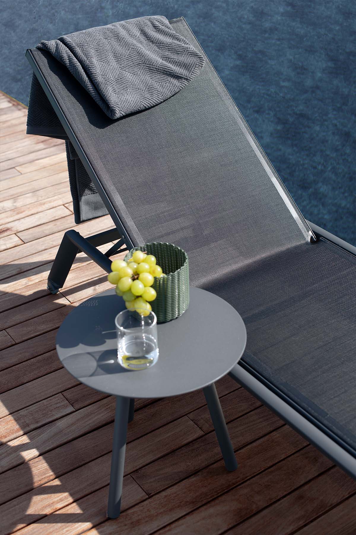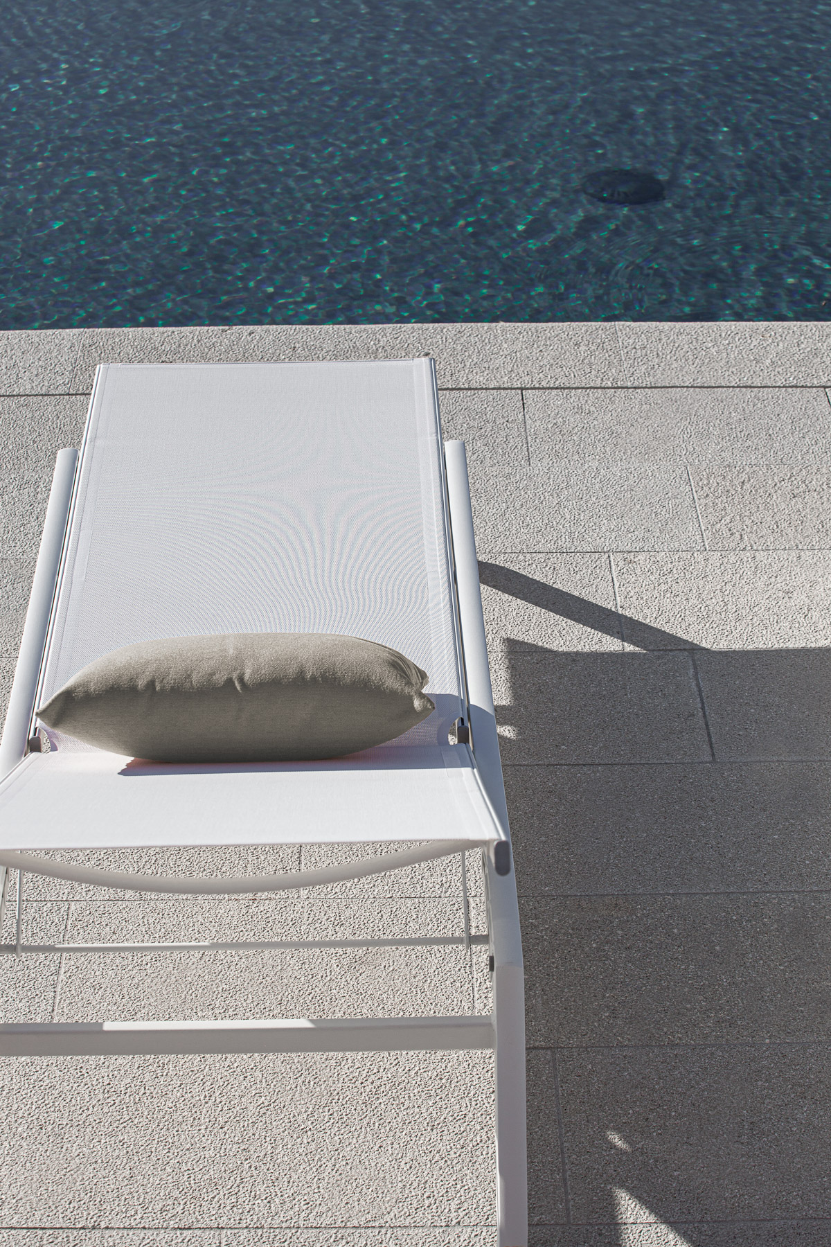 Алюминиевые рамы окрашены эпоксидной смолой для наружных работ в белый или графитовый цвет. Сиденье и спинка из технической ткани micro heat sealed Textilene белого или черного цвета для наружных работ.
