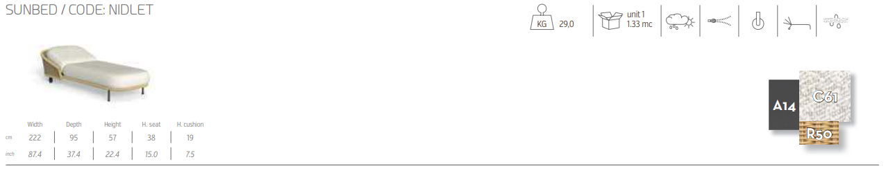 Шезлонг Nido — это воплощение релаксации на открытом воздухе, благодаря обволакивающей конструкции и изысканному дизайну, напоминающему о естественности плетеного стиля. Этот шезлонг обеспечивает оптимальный комфорт благодаря широкому сиденью и наклонной спинке, которые идеально подходят для полного расслабления. Мягкие линии и боковое плетение создают ощущение ручной работы, а задние колеса позволяют легко перемещать шезлонг. Шезлонг Nido идеально подходит для террас и садов и приглашает вас насладиться солнцем и спокойствием в защищенном уголке, подобном маленькому личному убежищу.