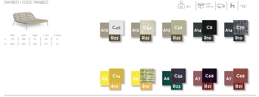 Большая и округлая кушетка из коллекции Panama идеально подходит для уличной мебели. Благодаря отличной форме, изделие устойчиво благодаря алюминию, используемому для изготовления конструкции. Сиденье полностью изготовлено из синтетических морских канатов, а мягкая и функциональная подушка изготовлена из материалов, устойчивых к атмосферным воздействиям. Кушетка доступна в различных цветах и прекрасно дополнит зону отдыха в саду или у бассейна.