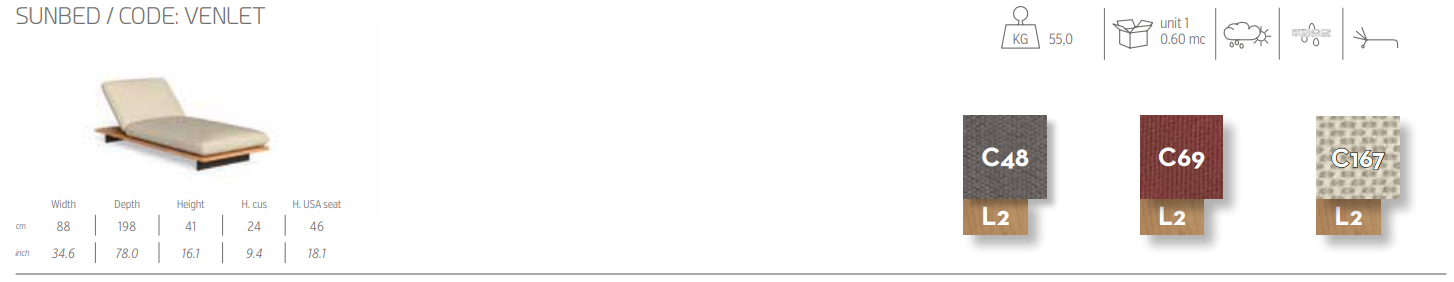 Итальянский шезлонг Venice Sunbed от Talenti