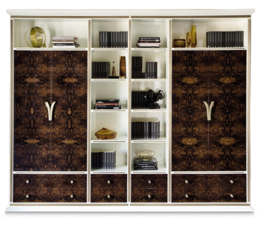Итальянский шкаф Gatsby от MINOTTICOLLEZIONI — элегантное решение для хранения книг и декора. Секционная конструкция сочетает облицованные дверцы, стеклянные вставки и открытые полки, создавая гармоничный баланс функциональности и стиля.