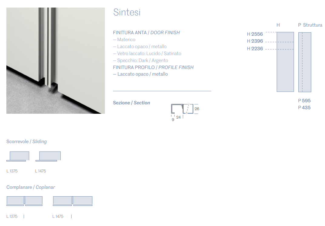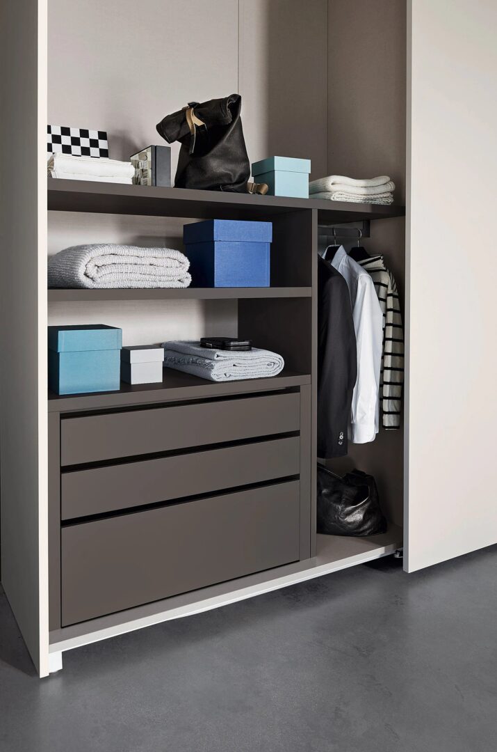 Организовать повседневную жизнь с помощью безошибочного дизайна синтеза: система отделки и дверей различных размеров, которые создают различные решения каждый раз: от текстурного до матового лака, шпона, для шкафов, также доступных с раздвижными и копланарными дверями. Для беспроблемного отверстия, подходит даже для небольших помещений.