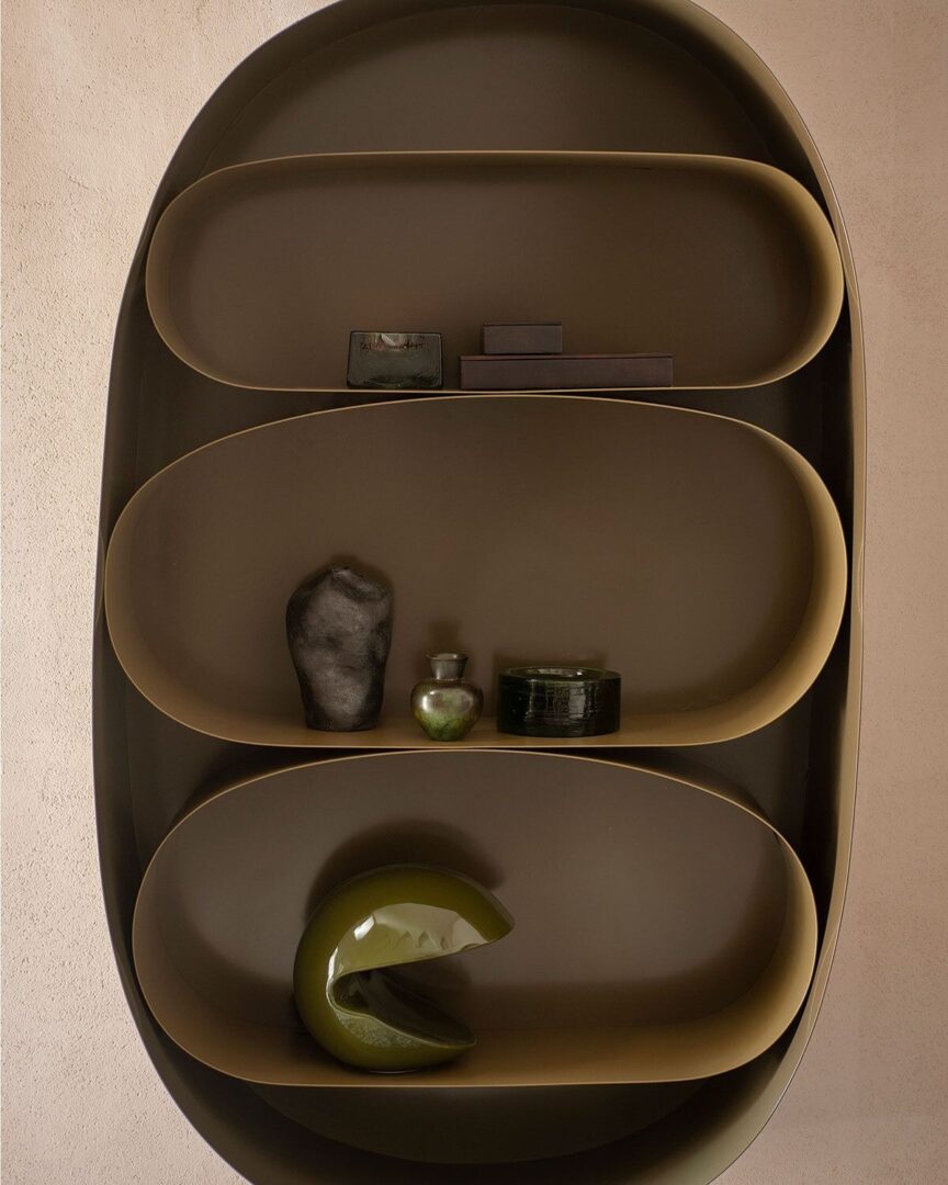 Astral — это металлический шкаф для хранения, который подчеркивает неправильные и эллиптические скульптурные формы, создавая мост между искусством и повседневной жизнью. Он является частью коллекции Cosmic, разработанной совместно с Фэй Тугуд.