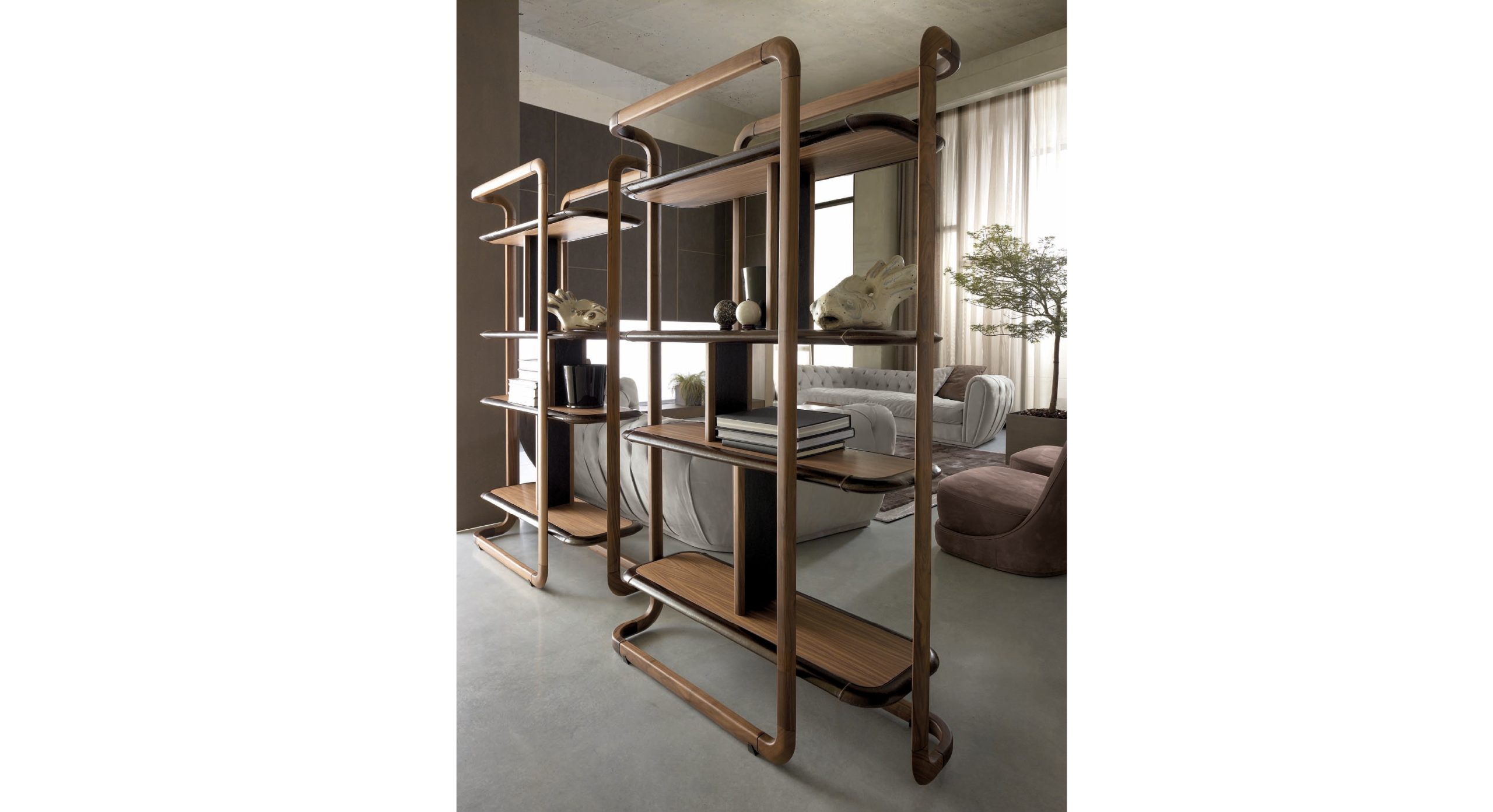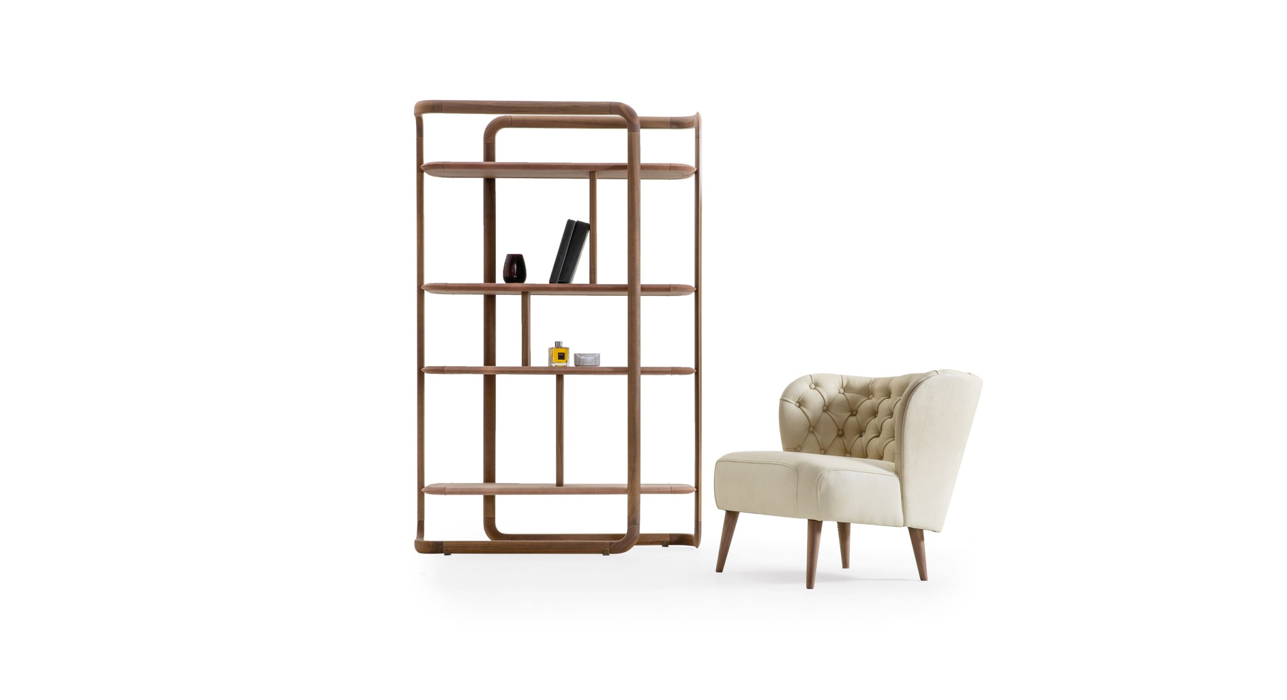 Основная конструкция : Выполнена из массива американского ореха. Края полок : Обиты высококачественной кожей различных цветов. Полки : Из цельного американского ореха.