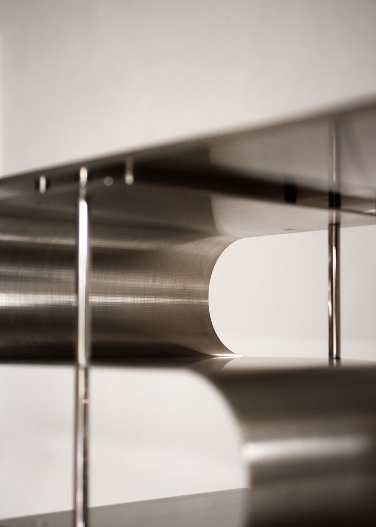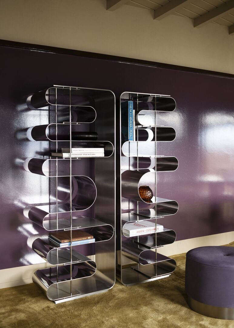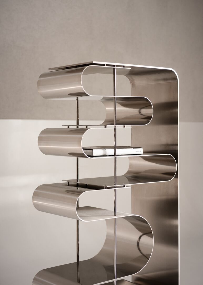 Книжный шкаф Dune от студии Draga&Aurel — образец экспериментального дизайна с озорным характером. Тонкий лист нержавеющей стали задает форму волнистым и изогнутым очертаниям, которые динамично образует в пространстве цельная стальная лента с глянцевой (на внешней) и матированной (на внутренней стороне) отделкой. Плавные линии каждого изгиба соединяются в книжный стеллаж, напоминающий функциональную скульптуру. Он отлично встанет у стены или отдельно, разграничивая пространство и играя отблесками света и красок.