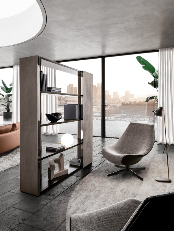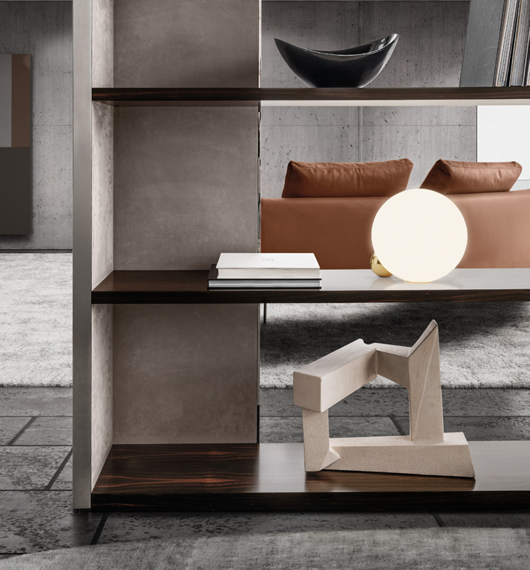 Он привносит в него врожденную элегантность и очарование. “Elle“ выглядит именно так во всей своей естественной и легкой красоте. Библиотека, разработанная Маттео Нунциати для i4 Mariani, отличается универсальностью: этот предмет мебели подходит для любой комнаты в доме и может быть размещен в разных положениях от центра до стены, благодаря особому дизайну, сочетающему боковую и заднюю стенки шкафа.
